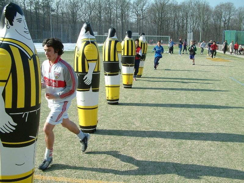 Der aufblasbare, aus Kunststoff bestehende und 2,05 Meter große ‘Air-Dummie" ist sehr einfach zu handhaben und durch sein geringes Gewicht leicht zu transportieren und aufzustellen. Seine Standfestigkeit erhält der Air Dummie durch integrierte Gewichte im Hüllenkern. In der Trainingspraxis kann der Air Dummie einen Mit-bzw. Gegenspieler simulieren. Auf den Events wird der "Air Dummie" als Blickfang und als Deko eingesetzt, denn er besticht durch seine Größe und Optik und steht somit auch im Focus bei Veranstaltungen jeglicher Art.