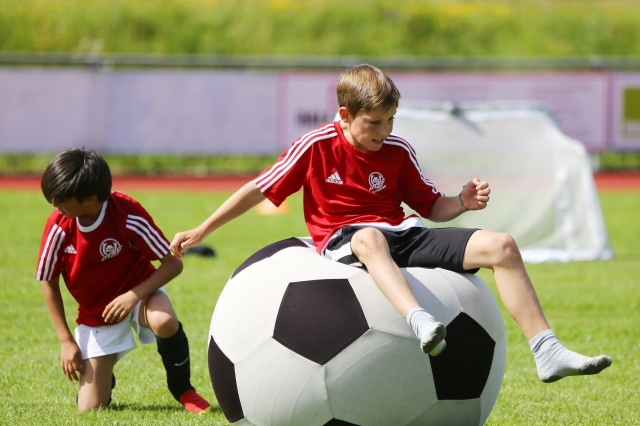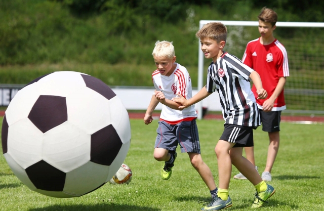 Der XXL Ball ist ein Fun Modul das Ihre Zuschauer in den Bann ziehen wird. Mit diesem Riesenball kann man natürlich auch Fußball spielen oder er eignet sich auch hervorragend als Deko für Ihre Events. Die Spezialbeschichtung des Balles ist mit einem waschbaren Überbezug bezogen. Der Luftdruck lässt sich je nach Einsatzmöglichkeit jederzeit regulieren.