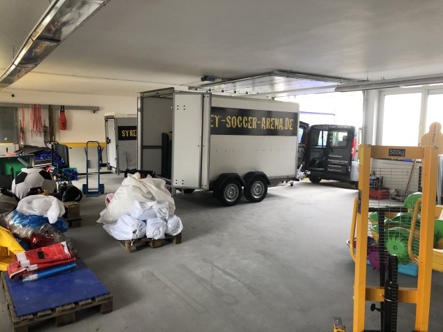 Auf 180m² Lagerfläche sind nun alle Event-Module und Bandenelemente zentral eingelagert. Somit ist nicht nur eine noch schnellere Lieferung an unsere Kunden möglich, auch für unsere Selbstabholer bietet der neue Standort eine hervorragende Verkehrsanbindung. Das Be-und Entladen erfolgt im wettergeschützten Hallenbereich und ist zugänglich für Fahrzeuge mit Anhänger bzw. LKWs bis 7,49 t.