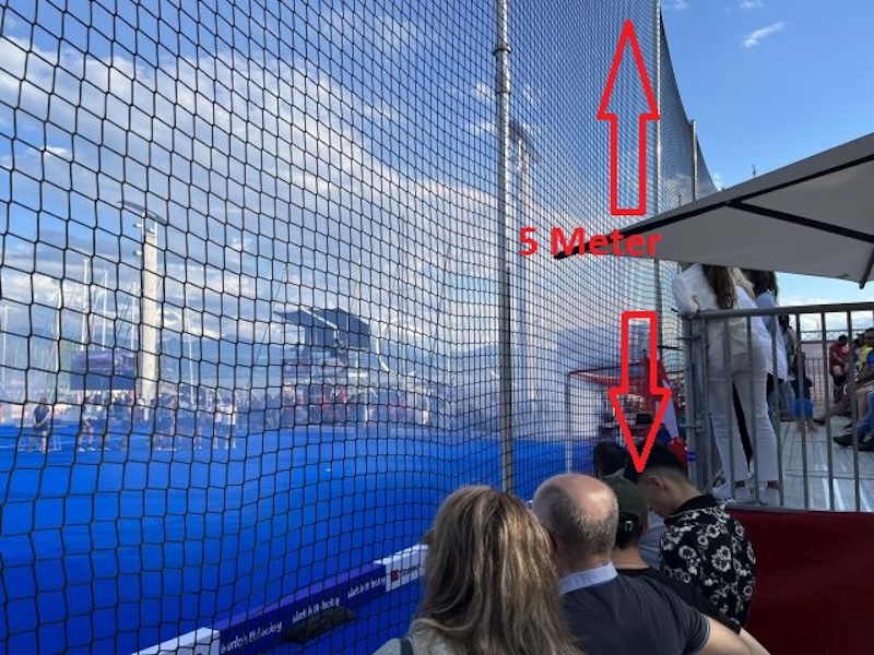 Da gerade im Hockeybereich besonders die Zuschauer geschützt werden müssen, wird ein Netzfang (Maschen 40x40 mm) mit einer Gesamthöhe von fünf Metern um das Spielfeld installiert.